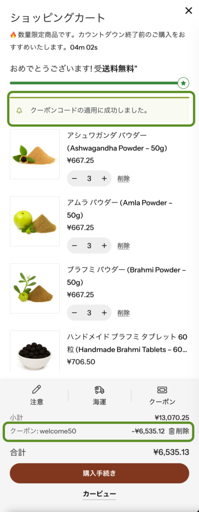 クーポンが正しく適用されると、